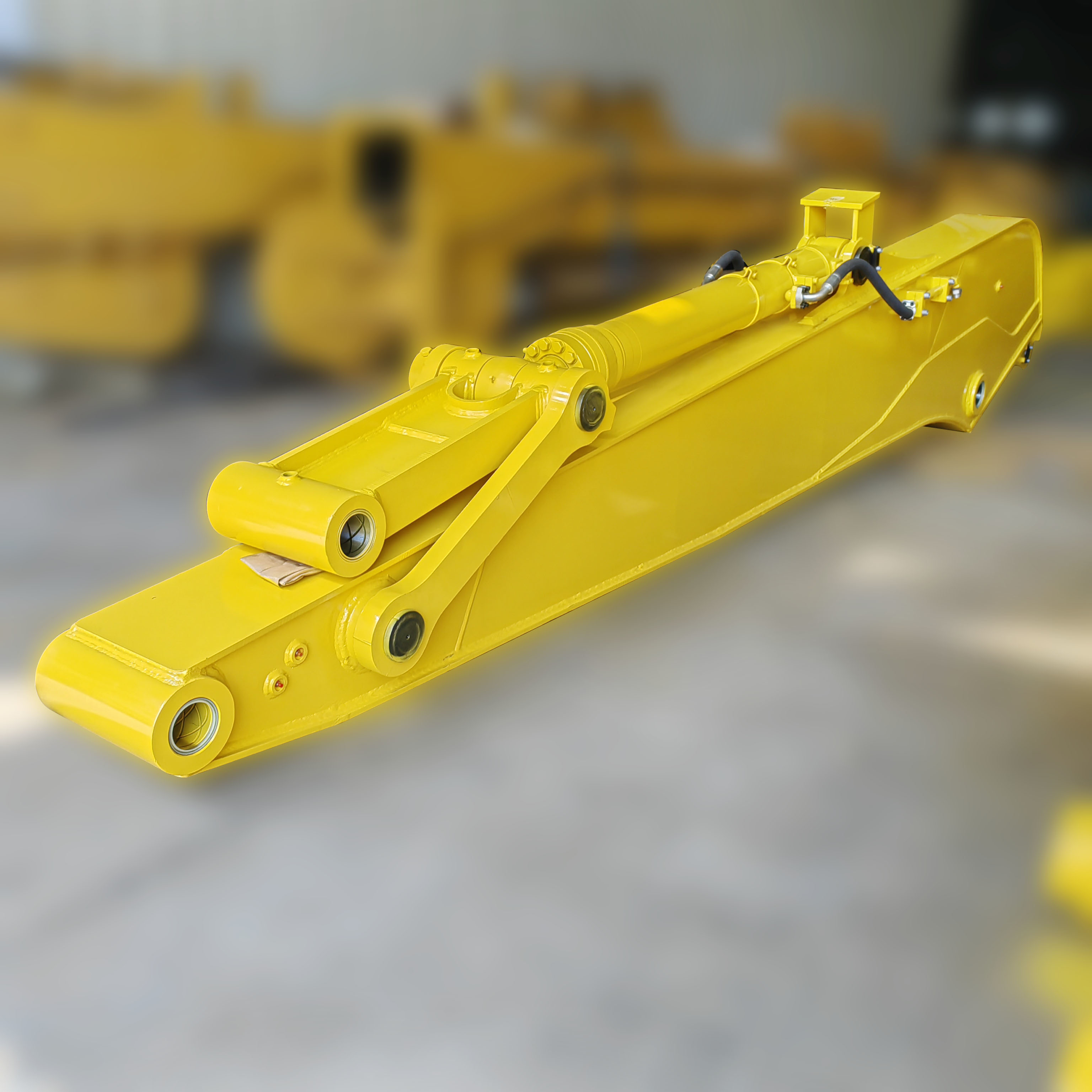 Ο μακρύς βραχίονας εξορυκτήρα, επίσης γνωστός ως επέκταση άξονα ή προσαρμογή μακράς εμβέλειας, είναι μια εξειδικευμένη τροποποίηση που έχει σχεδιαστεί για να επεκτείνει σημαντικά το επιχειρησιακό περίβλημα ενός τυποποιημένου εξορυκτήρα.Με την αντικατάσταση ή την επέκταση της αρχικής ράβδου και της ράβδου, τα εν λόγω εξαρτήματα επιτρέπουν στα μηχανήματα να επιτυγχάνουν ακτίνες λειτουργίας που κυμαίνονται από 10 μέτρα έως πάνω από 40 μέτρα, ανάλογα με τη διαμόρφωση.Ο σχεδιασμός χρησιμοποιεί συνήθως χάλυβα υψηλής αντοχής χαμηλού κράματος (HSLA), όπως το WELDOX, για τη διατήρηση της διαρθρωτικής ακεραιότητας, διατηρώντας παράλληλα το βάρος.