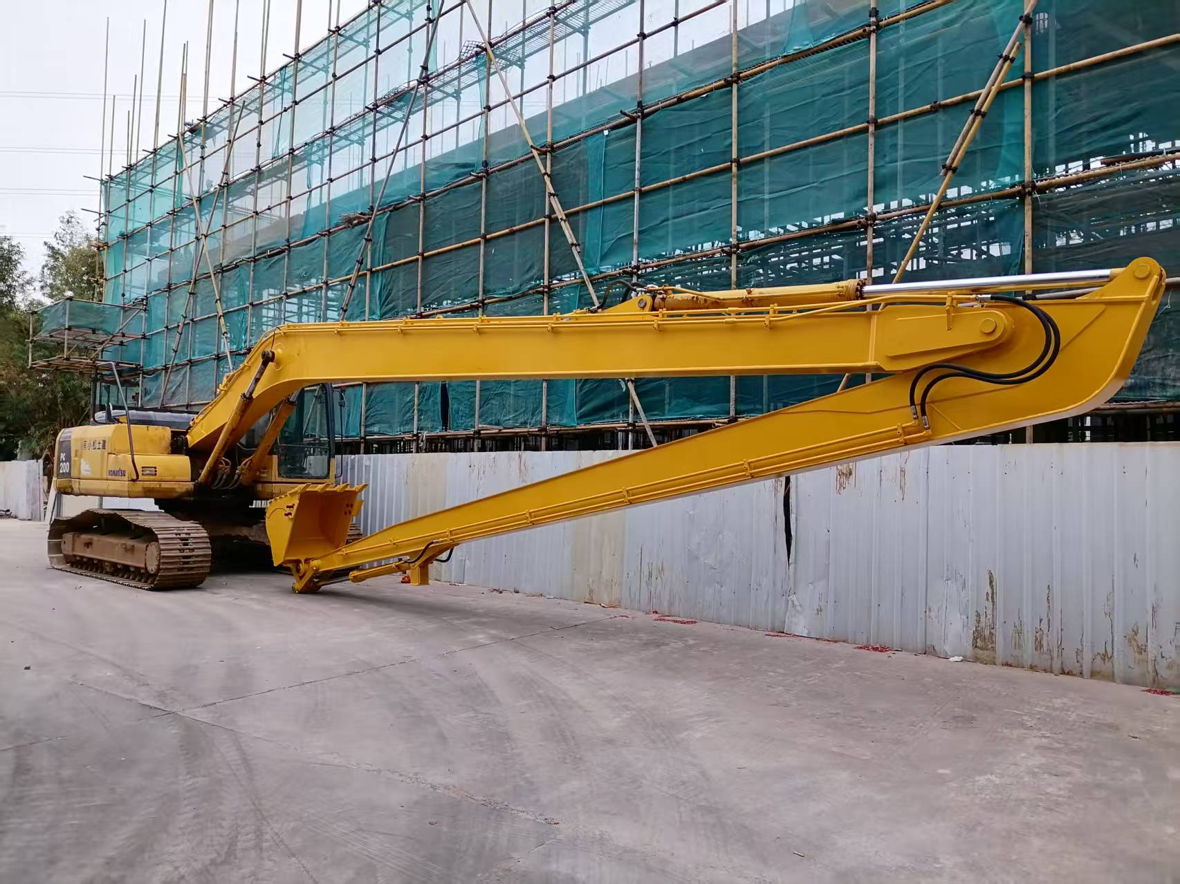 Ο μακρύς βραχίονας εξορυκτήρα, επίσης γνωστός ως επέκταση άξονα ή προσαρμογή μακράς εμβέλειας, είναι μια εξειδικευμένη τροποποίηση που έχει σχεδιαστεί για να επεκτείνει σημαντικά το επιχειρησιακό περίβλημα ενός τυποποιημένου εξορυκτήρα.Με την αντικατάσταση ή την επέκταση της αρχικής ράβδου και της ράβδου, τα εν λόγω εξαρτήματα επιτρέπουν στα μηχανήματα να επιτυγχάνουν ακτίνες λειτουργίας που κυμαίνονται από 10 μέτρα έως πάνω από 40 μέτρα, ανάλογα με τη διαμόρφωση.Ο σχεδιασμός χρησιμοποιεί συνήθως χάλυβα υψηλής αντοχής χαμηλού κράματος (HSLA), όπως το WELDOX, για τη διατήρηση της διαρθρωτικής ακεραιότητας, διατηρώντας παράλληλα το βάρος.